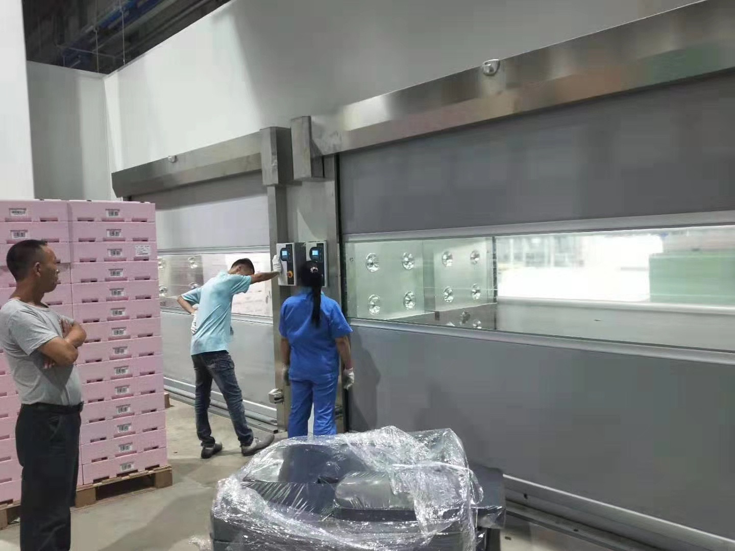 8、非標(biāo)和標(biāo)準(zhǔn)風(fēng)淋室的材質(zhì)說明,選擇風(fēng)淋室材質(zhì)是決定風(fēng)淋室價格的要因素。風(fēng)淋室內(nèi)、外箱體有可供選用的材質(zhì)主要有二種:全A3冷板多層酸洗靜電噴涂(通常稱為冷板),不銹鋼板(SUS201,SUS304,SUS316等,厚度一般為0.8~1.5mm)。保健品無塵車間風(fēng)淋室安裝現(xiàn)場。