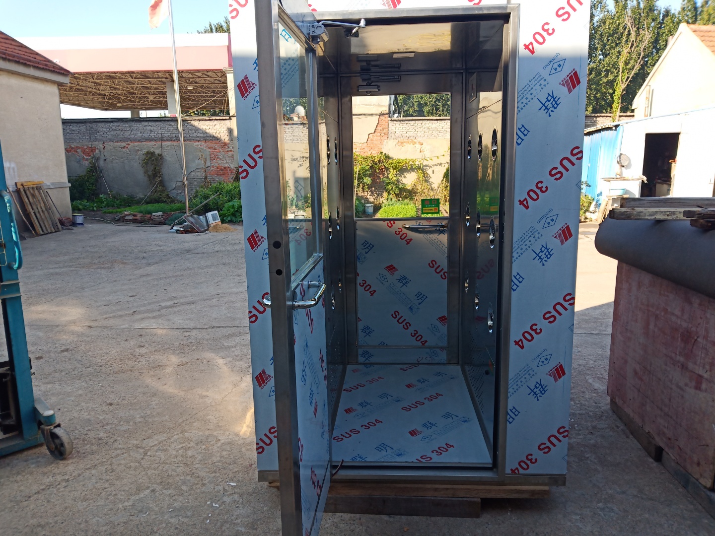 風(fēng)淋室是操作人員進(jìn)入潔凈室時使用的人身凈化裝置。它利用高速潔凈氣流吹淋除掉進(jìn)入室內(nèi)人員身上的污物。其噴嘴可調(diào)節(jié),以便有效除去人身上的灰塵,并阻止外界污染進(jìn)入潔凈區(qū)域。它也可應(yīng)用于大件貨物的吹淋。風(fēng)淋室是潔凈廚房和裝配式潔凈室的潔凈設(shè)備,用于吹除進(jìn)入凈化廠房的人體和攜帶物品表面的塵埃,同時風(fēng)淋室又起到氣閘緩沖的作用,防止未經(jīng)凈化的空氣進(jìn)入潔凈區(qū)域,是進(jìn)行人體凈化和阻止外空氣污染潔凈區(qū)的有效設(shè)備。