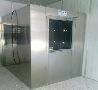防爆風(fēng)淋室是人/貨進入潔凈室所必需的通道,為了減少由于人/貨進出帶來的大量塵埃粒子,在潔凈室的入口處安裝功能齊全的“氣閘室”可以減少空氣污染微粒的數(shù)量。風(fēng)淋室內(nèi)的空氣由風(fēng)機的送風(fēng)經(jīng)初效過濾器進入靜壓箱,經(jīng)高效空氣過濾器過濾后,潔凈空氣以22~25m/s的超強風(fēng)速從風(fēng)淋室的噴嘴高速噴出,噴嘴角度可調(diào)節(jié),可有效地吹除人身或攜帶物品表面附著的塵埃,塵埃再回收進入初效空氣過濾器,如此循環(huán)可以達到風(fēng)淋除塵的目的。